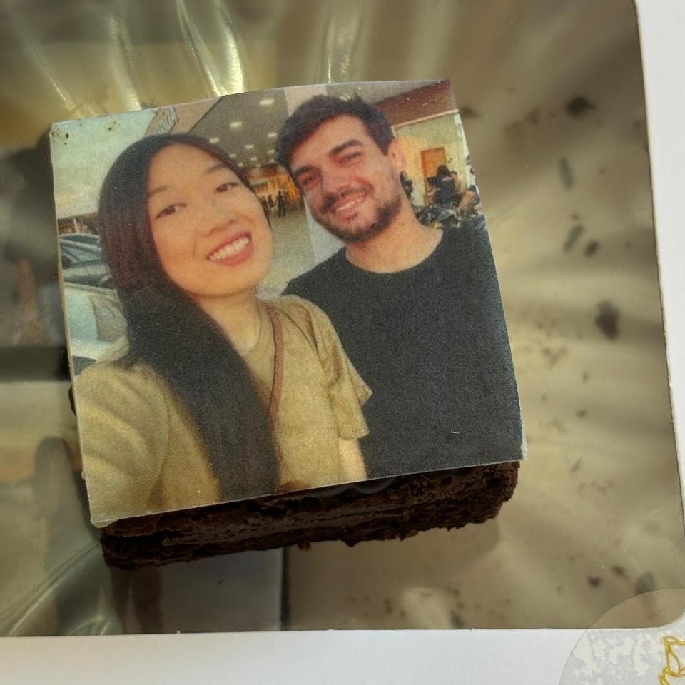 Saímos com a intenção de nos conhecer melhor e dar uma chance ao que poderia surgir entre nós. Três meses depois, veio o pedido de namoro. Bruna, uma confeiteira bastante conhecida na cidade, preparou o próprio bolo para o pedido — sem saber que seria ela mesma a surpreendida.
